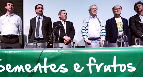 Assim, um dos momentos marcantes, foi a hora de cantar o hino nacional. Deixamos de bancar os chamados “dois de paus” – é a associação que me ocorre agora-, e começamos a manifestar a vitalidade dos movimento sociais e , mais especificamente, dos educadores e educadoras da Rede de Educação Cidadã: Sem excessos, as pessoas passaram a se movimentar em moderada dança, sorrisos, movimentos de palmas e braços, se olharam e se admiravam de sua inciativa que não se sabe onde começou, talvez, há muito tempo residisse enclausurada no coração de cada brasileiro.