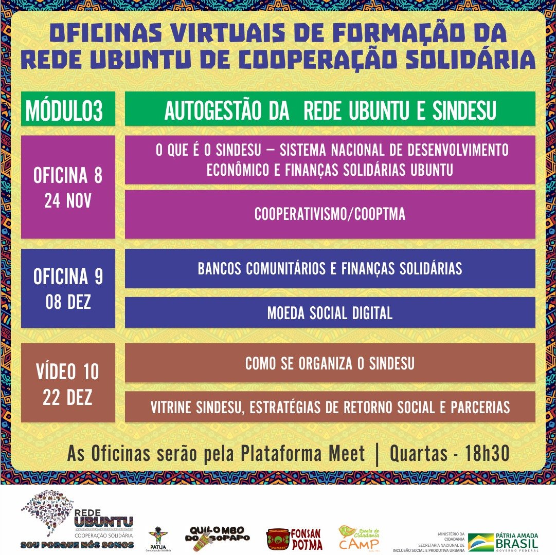 O módulo trabalho em 6 aulas sobre Autogestão da Rede Ubuntu e SINDESU (Sistema Nacional de Desenvolvimento Econômico e Finanças Solidárias Ubuntu)
