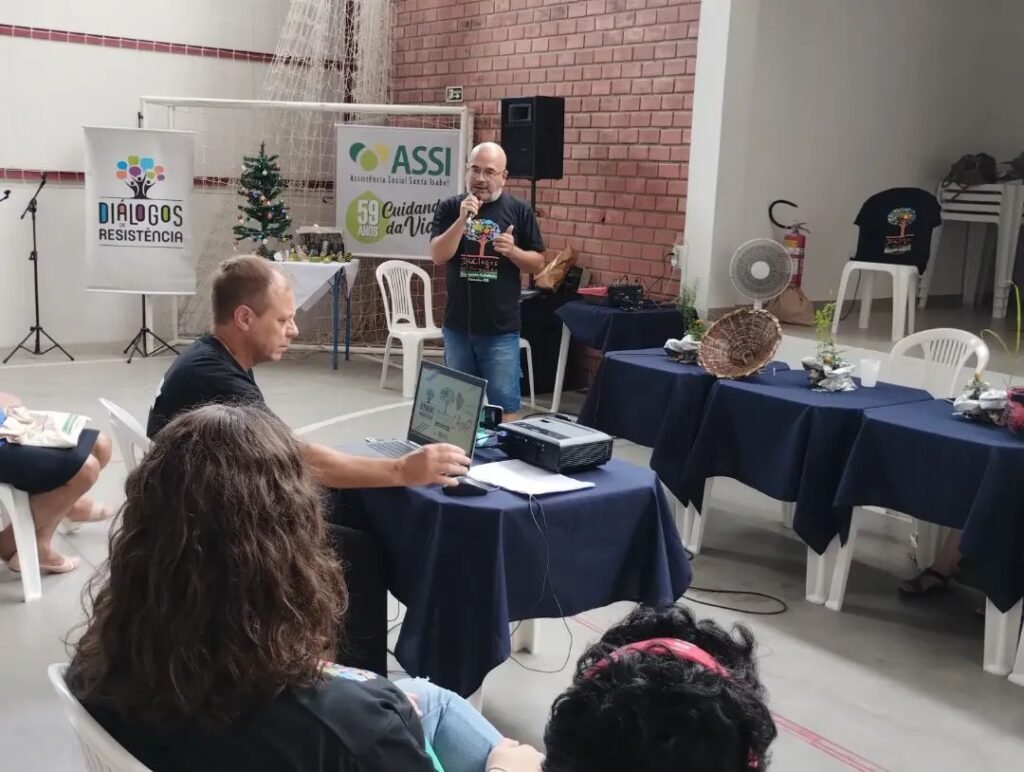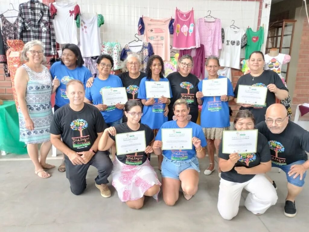 Dia 10 de dezembro ocorreu o Seminário Final de Articulação e Troca de Experiências do projeto Diálogos de Formação em Economia Solidária: geração de renda em Viamão/RS, que reuniu os/as paticipantes dos Cursos de Formação de Horta Comunitária e Paisagismo, AudioVisual, Costura e Customização e Reciclagem, que também receberam os certificados.