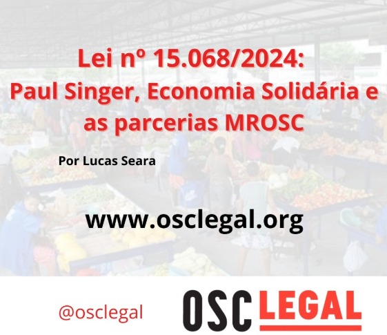 Lei nº 15.068/2024: Paul Singer, Economia Solidária e as parcerias MROSC (Por Lucas Seara)