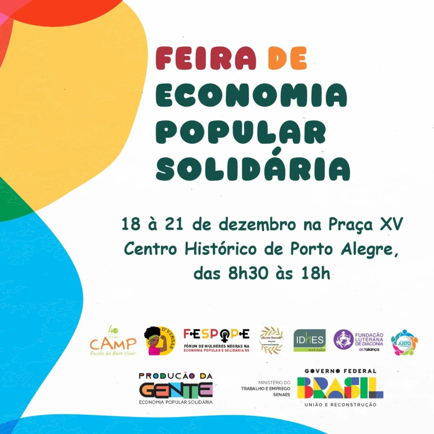 A Feira de Economia Popular Solidária ocorrerá de 18 à 21 de dezembro das 8h30…